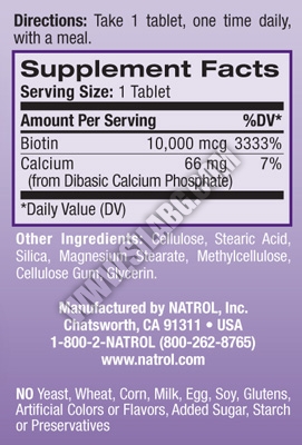 Properties and benefits of Biotin Maximum Strength 10,000 mcg by Natrol: