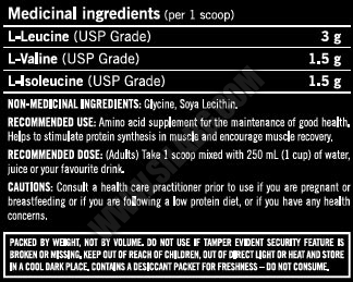 Ingredients: L-Leucine, L-Valine, L-Isoleucine