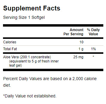 Each softgel contains aloe vera extract from a 200:1 concentrate, delivering the benefits of 5 grams of fresh inner leaf gel. Aloe vera is traditionally used to support the digestive system by promoting a healthy intestinal lining and regular bowel function. Its soothing properties may help reduce occasional gastrointestinal discomfort and support detox processes in the gut.