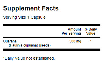 Ingredients: Guarana (Paullinia cupuana) (seeds), vegetable capsule.