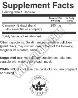 The active ingredient, cinnamon extract (bark), is standardized to contain 4% essential oil complex, ensuring consistent potency. Cinnamon has been traditionally used to support healthy blood sugar levels, particularly in relation to carbohydrate metabolism. It also contributes to digestive comfort and overall metabolic balance when taken with meals.