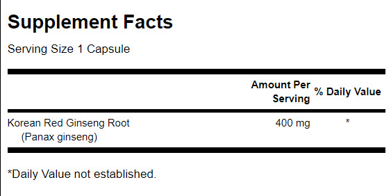 Ingredients: Korean Red Ginseng Root (Panax ginseng) – 400 mg