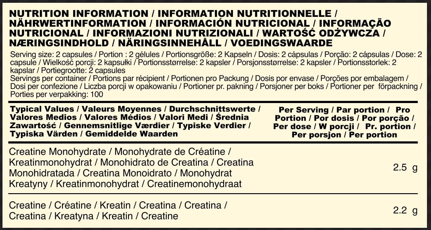 Най-силната капсула с креатин, предлагана на пазара – 2500 мг. Creapure формула в 2 капсули.