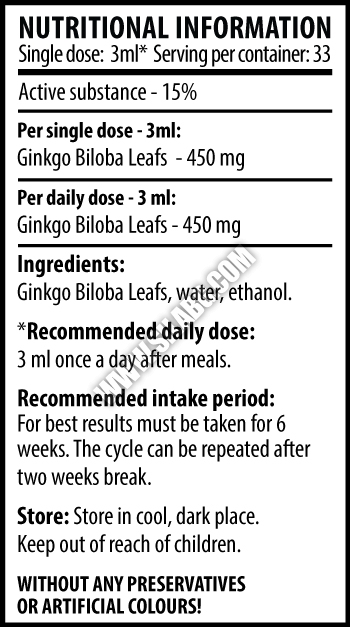 GINKGO BILOBA MAX is a natural food supplement in liquid form, consists of Ginkgo Biloba, used for promoting the blood circulation in brain and extremities and stimulating brain function.
