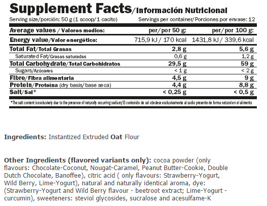 Suggested use: Use as you would use regular oatmeal - mix with water or milk for breakfast, pre-workout meals, or recovery meals.