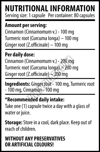 Herbal Flex from Cvetita Herbal consists of turmeric, cinnamon, and ginger. They together act synergetic and stimulate the immune system of the organism and help when there is an inflammatory.