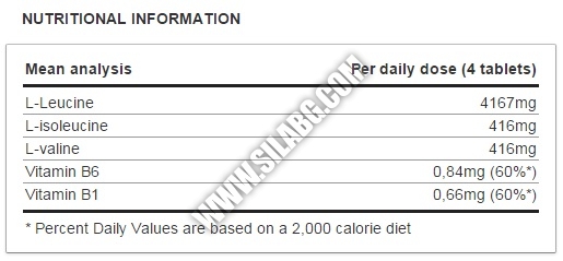 Ingredients: L-Leucine , L-Isoleucine , L-Valine, Vitamin B6, Vitamin B1