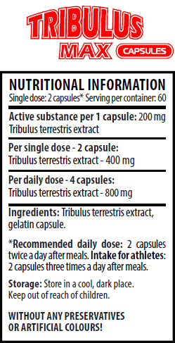 Features and characteristics of Tribulus Max from Cvetita Herbal: