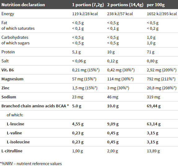 Diving into the specifics, the unique 20:1:1 ratio of BCAAs in BCAA 20:1:1 promotes optimal muscle protein synthesis, ensuring effective muscle repair and growth. Vitamin B6 catalyzes the metabolism of proteins, fats, and carbohydrates, keeping you energized throughout strenuous activities. Zinc plays a pivotal role in maintaining a robust immune system and helps regulate optimal testosterone levels, crucial for muscle development. Magnesium, on the other hand, aids in muscle contraction and relaxation while also bolstering bone health.