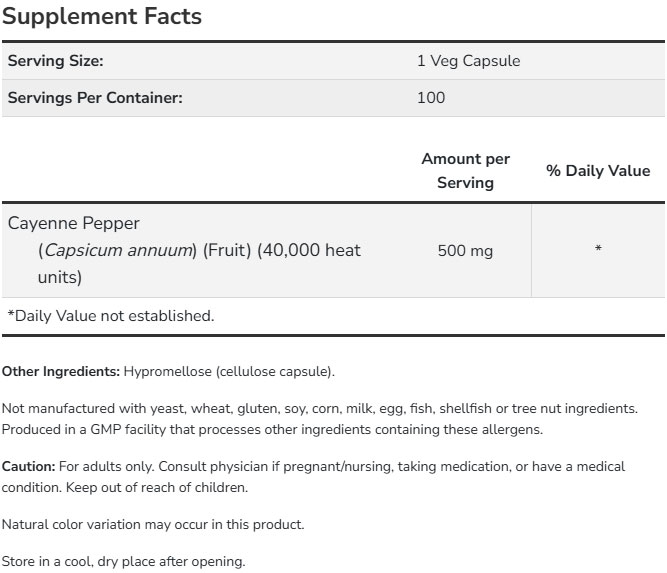 HAYA LABS Cayenne Pepper Extract 40000 SHU / 100 Caps -