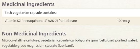 NATURAL FACTORS Vitamin K2 100mcg. / 60 Vcaps.