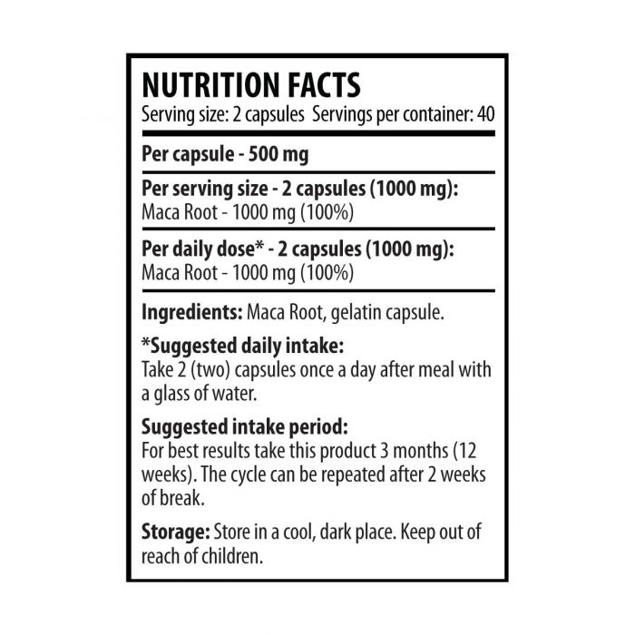 Maca is a plant, which accelerates the endurance, energy and increases the immune system, improves the health and reproductive system. Maca comes from the Andes, rich of amino-acids and has a high content of proteins. The plant enriches the libido and betters the function of the reproductive system.