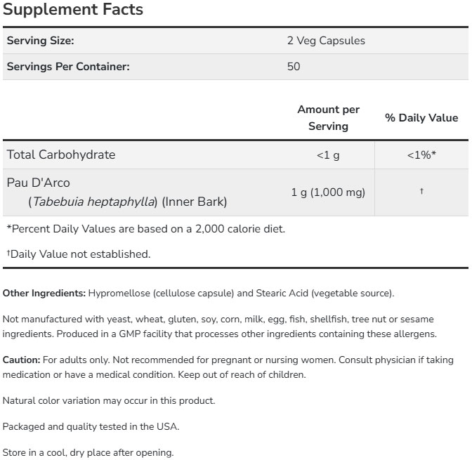 NOW Pau D' Arco 500 mg / 250 Vcaps