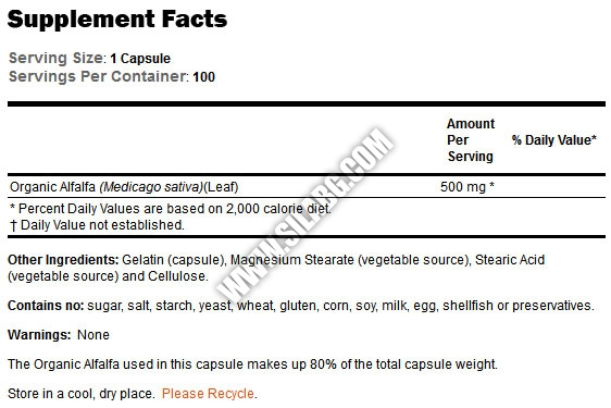 NOW Alfalfa Leaf 500mg. / 100 Caps