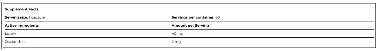 Each softgel provides Lutein, a carotenoid known for its role in filtering harmful blue light and maintaining the health of the macula, the central part of the retina responsible for sharp vision. Lutein acts as an antioxidant and is especially important for people exposed to screens or artificial light for prolonged periods.