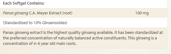 NATURAL FACTORS Panax Ginseng 100mg. / 60 Soft.