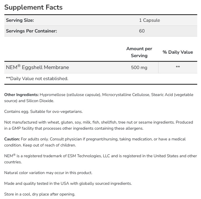 NOW Eggshell Membrane 500 mg / 60 Caps
