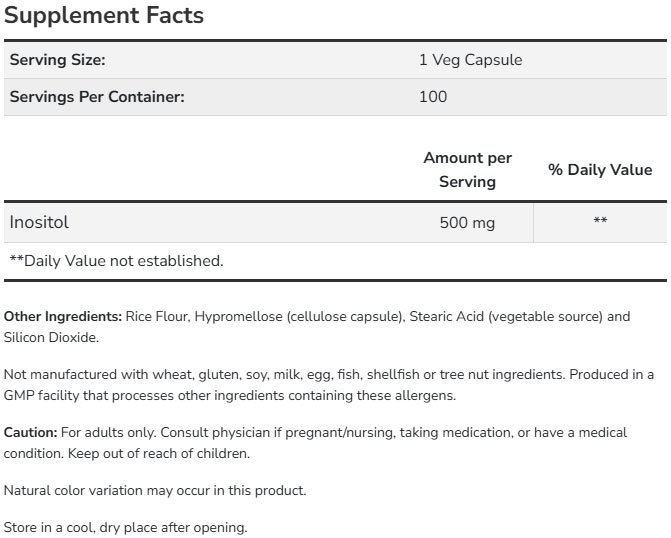 HAYA LABS Inositol 500 mg / 100 Caps -