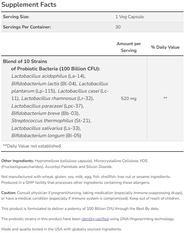 NOW Probiotic-10 100 Billion / 30 Vcaps