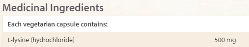 NATURAL FACTORS L-Lysine 500mg. / 90 Vcaps.