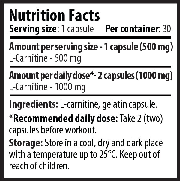 L-Carnitine from Cvetita Herbal is a transporter of the fats through the cell membrane of the red muscle tissues to their mitochondria. There they are being transformed in ATF and are burned as energy.