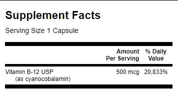 Ingredients: Vitamin B-12 (as cyanocobalamin)