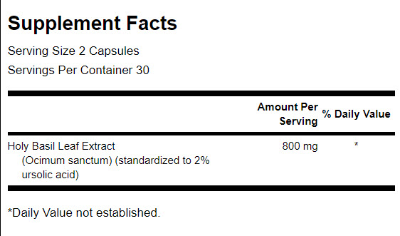 Contains 800 mg of Holy Basil Leaf Extract per serving