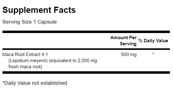 Ingredients: Maca Root Extract 4:1 (Lepidium meyenii)
