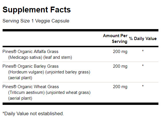 Ingredients: Organic Alfalfa Grass, Organic Barley Grass, Organic Wheat Grass.