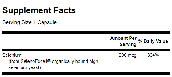 Ingredients: Selenium (from SelenoExcell® organically bound high-selenium yeast)