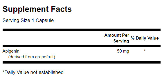 Apigenin is a flavonoid found in plants like parsley and grapefruit, known for its antioxidant and anti-inflammatory properties. It may support healthy cellular activity, help protect against oxidative stress, and promote a sense of calm and relaxation. This supplement provides 50 mg of apigenin per capsule, derived from grapefruit extract.