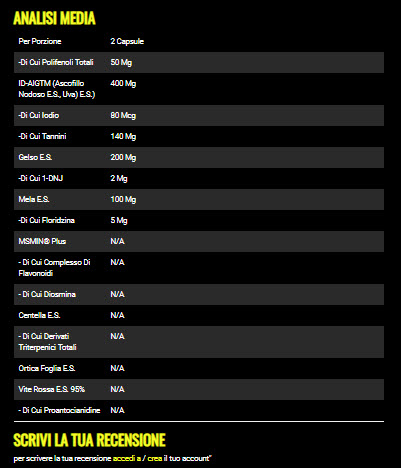 Ingredients: ID-alG™ (Ascophyllum nodosum extract) , Iodine, Tannins, Mulberry extract, DNJ, Apple extract, Rutin, MSM/MN Plus, Chromium complex, Diosmin, Centella extract, Tripterpenic derivatives, Nettle leaf extract, Grape seed extract 95% OPCs