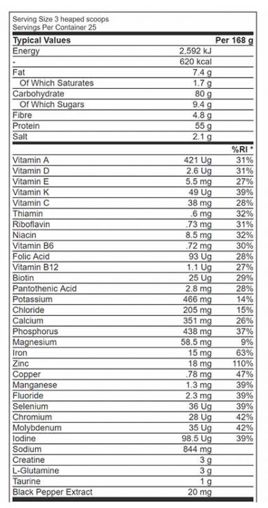 True-Mass All In One is meticulously crafted to elevate your general health and give you the extra push in muscle-building. The carbohydrate content fuels your workouts and aids in muscle recovery, while the protein mix facilitates muscle growth. But that's not all! The inclusion of essential vitamins and minerals ensures you're not just gaining mass but also improving your overall well-being.