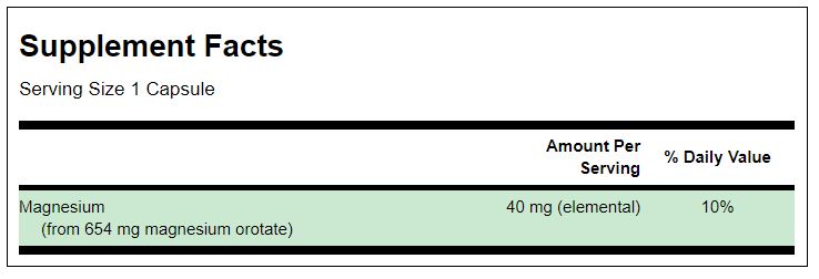 Ingredients: Magnesium (from magnesium orotate)