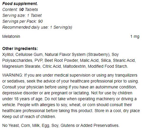 Contains 1 mg melatonin per tablet for gentle sleep support