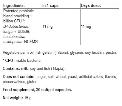 Pearls Probiotic / 1 billion active probiotics / 30 Softgels