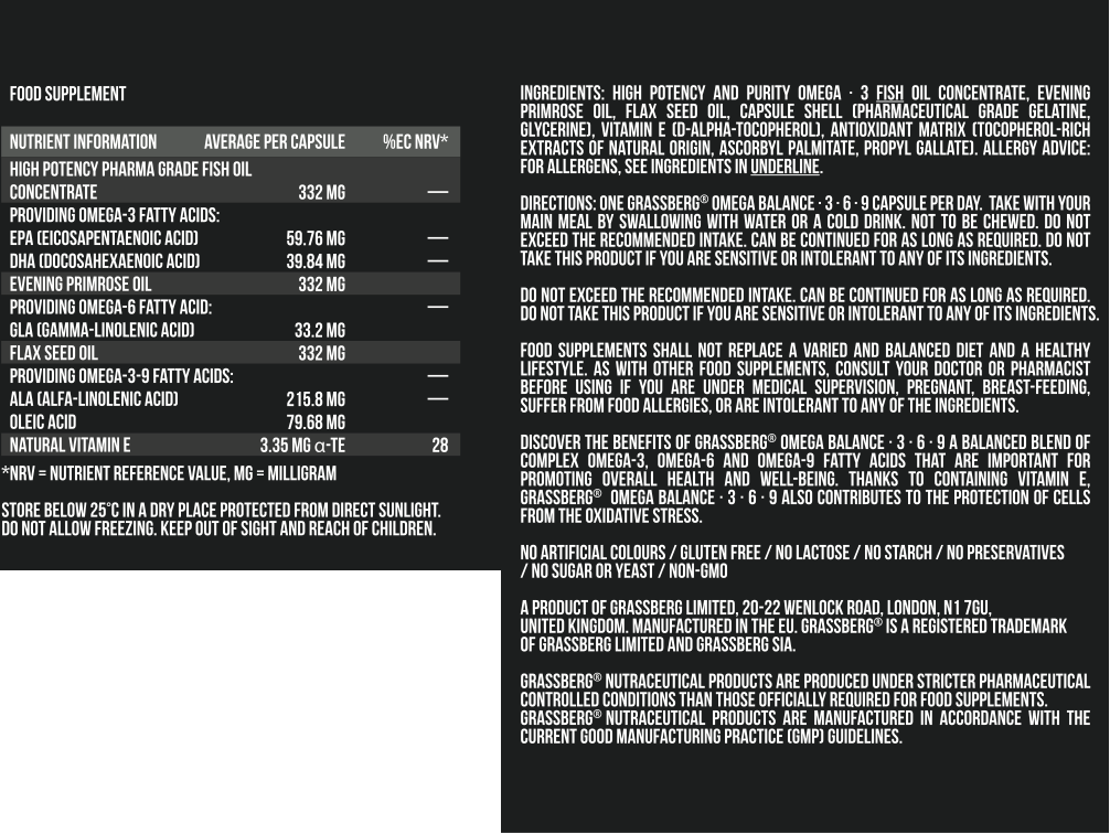 GRASSBERG Omega 3-6-9 Balance 1000 mg / 90 Softgels