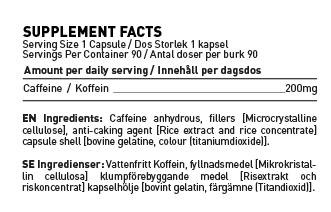 SWEDISH SUPPLEMENTS Caffeine 200 mg / 90 Caps