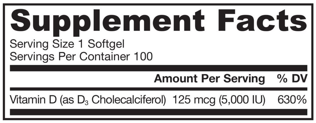 Jarrow Formulas Vitamin D3 5000 IU / 100 Softgels