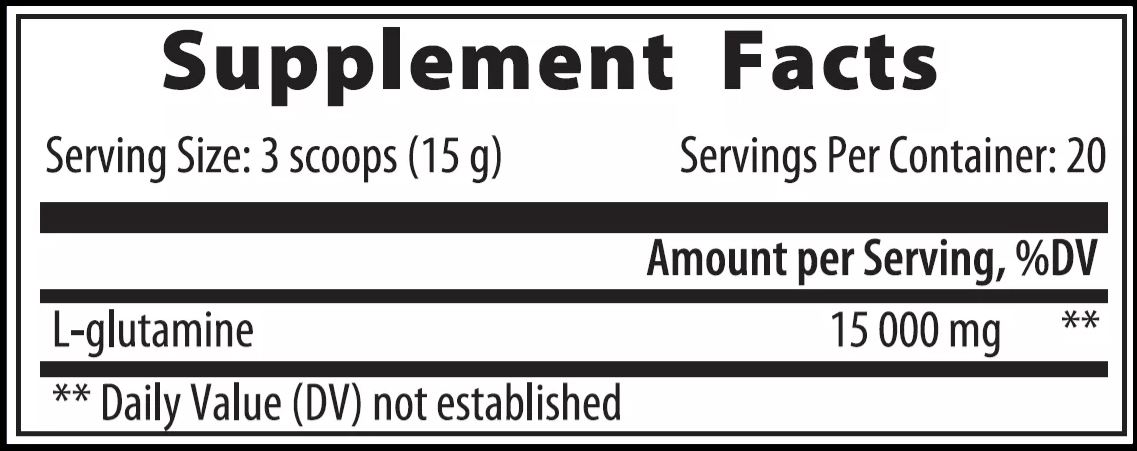 Each serving provides L-Glutamine – 15,000 mg, a conditionally essential amino acid that plays a crucial role in muscle protein synthesis and the prevention of muscle breakdown after intense exercise. L-glutamine also supports intestinal health by fueling enterocytes (gut lining cells), and contributes to immune function, particularly during periods of stress or overtraining.