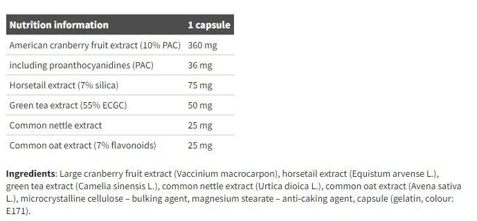 URO-COMPLEX by Olimp is a meticulously curated food supplement, drawing its potent benefits from nature's botanical treasures. With core ingredients like American cranberry fruit extract, horsetail extract, green tea extract, and common nettle extract, it’s a tailored blend designed to elevate your wellness journey.