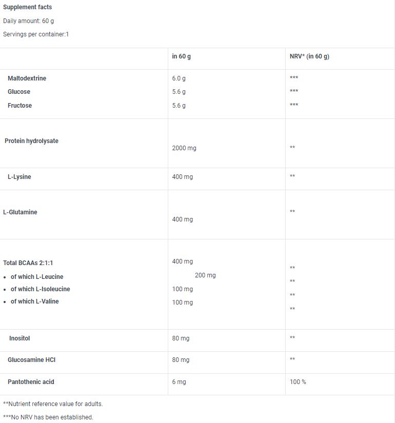 Recovery Gel by BioTech USA is an avant-garde food supplement meticulously crafted for fitness enthusiasts. Its premium blend of hydrolyzed proteins ensures that your muscles get the replenishment they yearn for post-exercise, while the added BCAAs, L-glutamine, and L-lysine boost recovery, ensuring you're ready for your next workout in no time.
