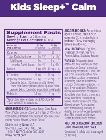 Properties and benefits of Kids Sleep+ Calm by Natrol: