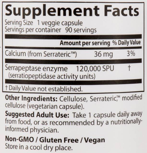 Features and benefits of High Potency Serrapeptase by Doctor’s Best: