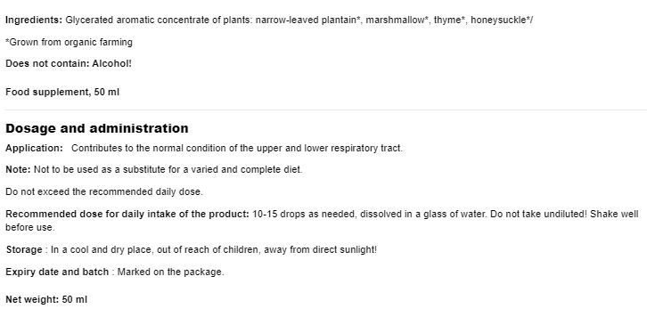 Aromax Eco 12 / Herbal Tincture for The Respiratory System (Alcohol Free) / 50 ml