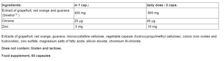 Linda Ren Diet Citric Slim is a unique formula that includes extracts from grapefruit, blood orange, and guarana, along with the minerals chromium and zinc. Grapefruit extract is rich in vitamin C and antioxidants, which stimulate metabolism and support fat burning. Blood orange, also rich in antioxidants, improves circulation and overall health.