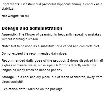 Plantis Chestnut Bud Flower Elixir is a dietary supplement that uses the natural properties of Red Horse Chestnut to improve your health. The Red Horse Chestnut is a plant known for its rich content of active ingredients like aescin, which has strong anti-inflammatory and venotonic effects. Aescin helps to strengthen the venous walls, thereby improving circulation and reducing the risk of developing venous problems such as varicose veins and hemorrhoids.