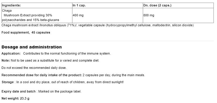 The Chaga mushroom extract contains a high concentration of betulinic acid, polyphenols, and other bioactive compounds, which are potent antioxidants. These help neutralize free radicals in the body, protecting cells from damage and slowing down the aging process. Additionally, Chaga stimulates the immune system, making it an excellent ally in combating infections and diseases.