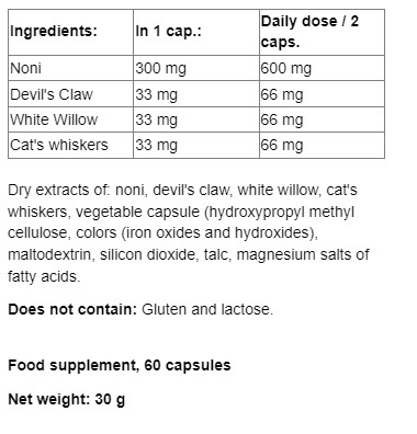 Nonilan is designed to provide all the benefits of these natural ingredients in one convenient supplement. Noni is a fruit known for its potent antioxidant properties and its ability to boost the immune system while improving overall health and vitality. Devil's Claw is renowned for its anti-inflammatory and pain-relieving properties, which help alleviate joint pain and improve mobility.