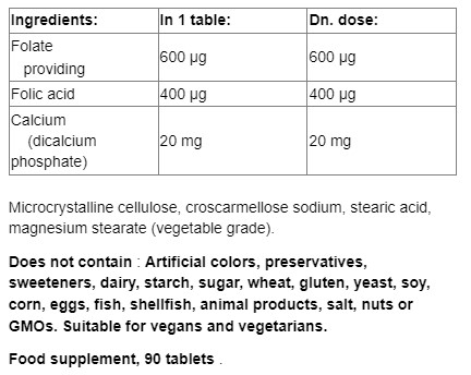 NATURAL FACTORS Folic Acid 400 mcg / 90 Tabs